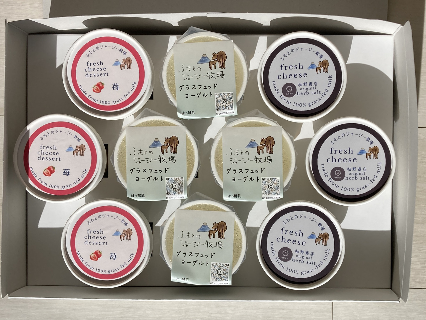 | 内容 | 3品目(ヨーグルト110g×4カップ、フレッシュチーズ(ハーブソルト)70g×3カップ、フレッシュチーズ(フルーツ)70g×3カップ) | ||||||
