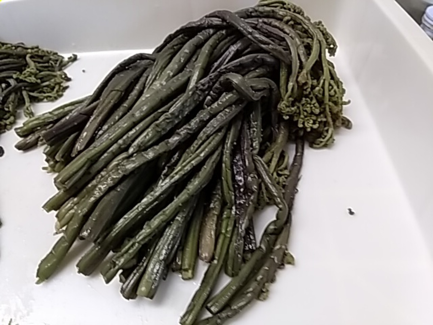 天然わらびを大切に管理し栽培したわらびを塩蔵し、1本1本固い部分をできるだけ取り除き、真空包装しました。色あい、風味を長持ちさせるための包装方法です。真空包装のため、賞味期限も翌シ-ズンまでおいしくお楽しみいただけます。