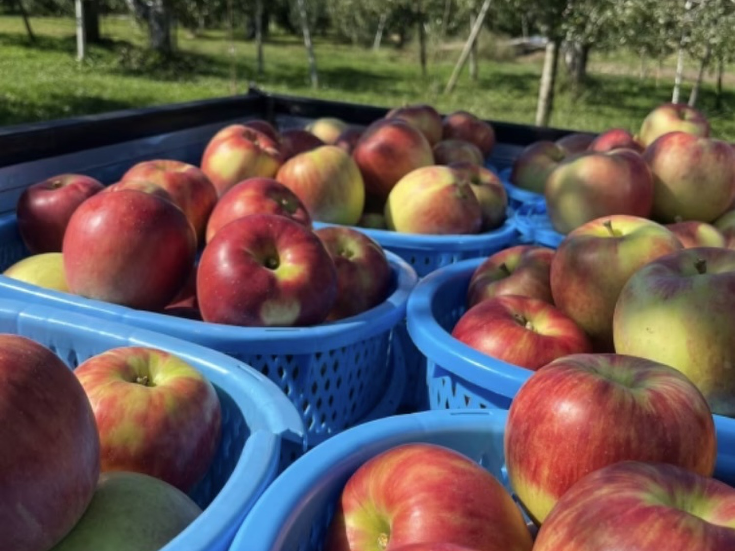 除草剤を使わず、草刈りを頻繁に行うことで、害虫の発生を抑え、刈った草が有機肥料になり、美味しいりんごを育てることができます。