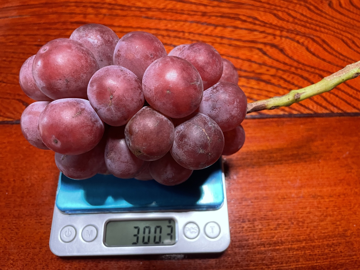 きれいに色づきました。房が約300g前後と小さめのお得な家庭用商品です。
