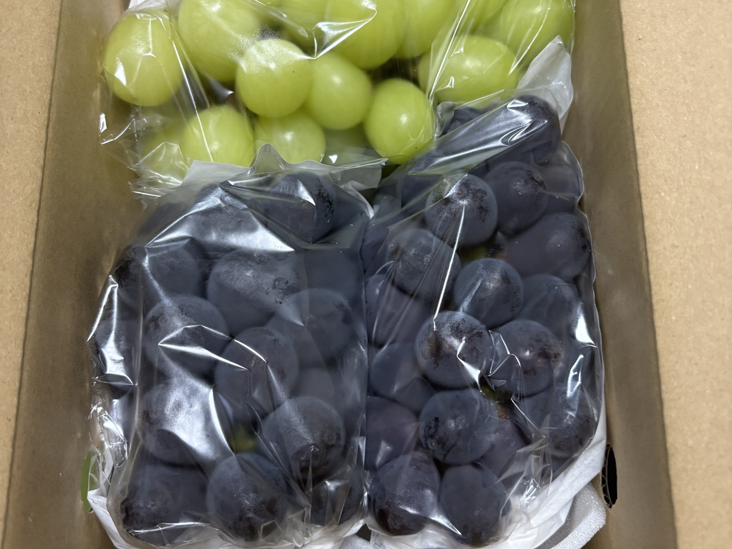 シャインマスカット1房、巨峰1房、ピオーネ1房です。