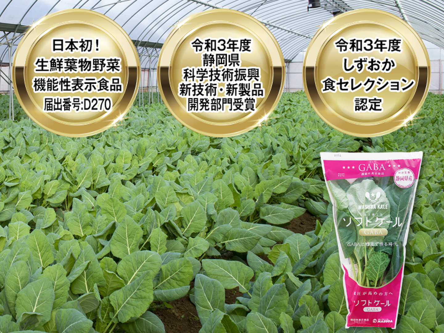 ケールは苦いイメージがありますが、食べやすいケールをコンセプトに10年の歳月をかけて開発し、「日本初!機能性表示食品(生鮮葉物野菜)」、「令和3年度しずおか食セレクション」認定、「令和3年度静岡県科学技術振興『新技術・新製品開発部門』」受賞、某テレビ番組で紹介されました。
