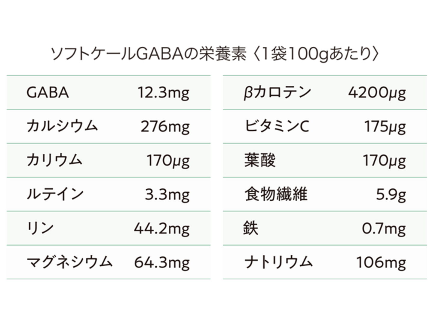 ソフトケールGABAは、えぐみ(シュウ酸)がないから、安心して毎日食べることができます。