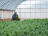 日射量の多い磐田市で太陽の光をたっぷり浴び、ビニールハウス内の土で落ち葉や米ぬかなど、自然由来の素材でできた有機肥料をたっぷり使い、静岡県の慣行基準の1/2以下で特別栽培。除草剤は使用せず、雑草は全て手で取り、手間ひまかけて大切に育てたソフトケールGABAを、1束毎に手摘みで収穫しています。