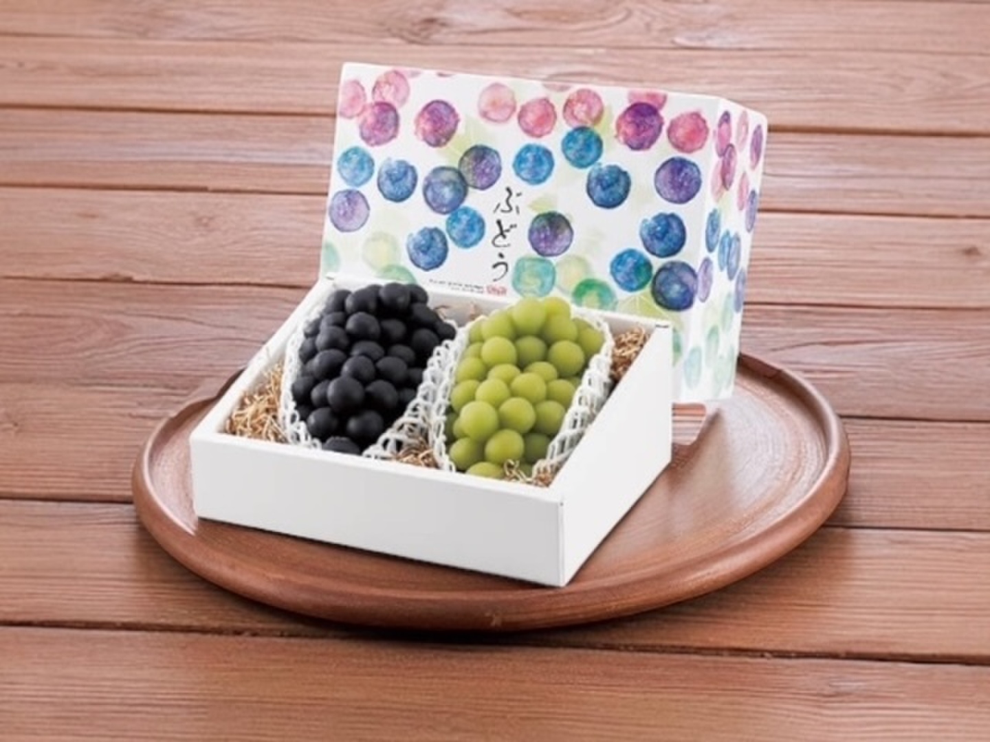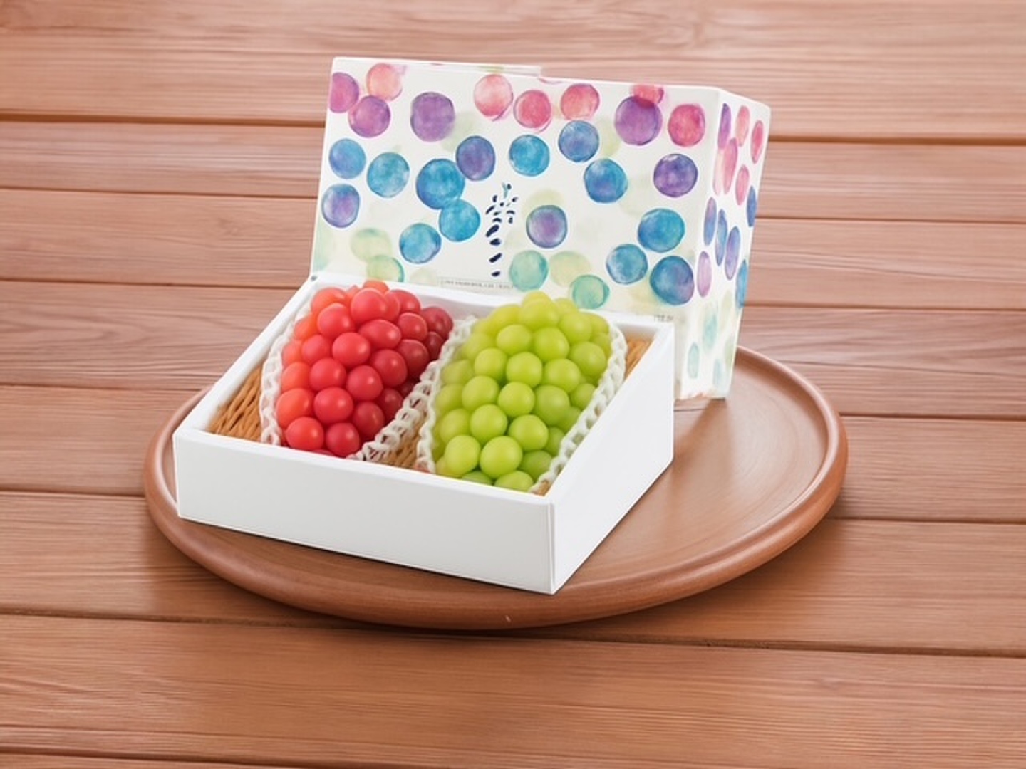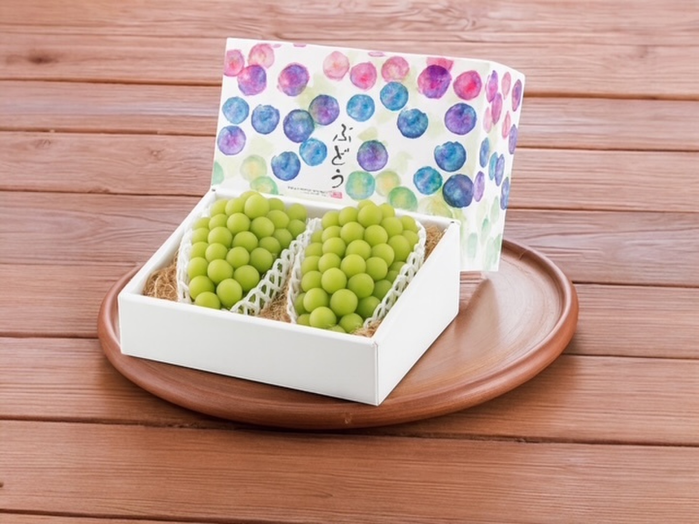 皮ごと食べられる瀬戸ジャイアンツ1房に、農園でその日に一番美味しく実ったぶどうを1房加えて、心を込めて詰め合わせた2房セット