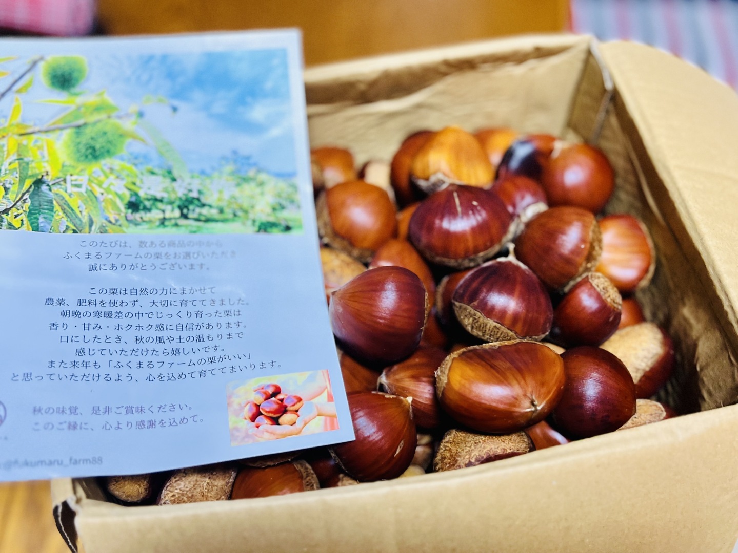 その日のうちに収穫、選別、箱詰め、出荷を行い、新鮮な栗をお届けいたします。