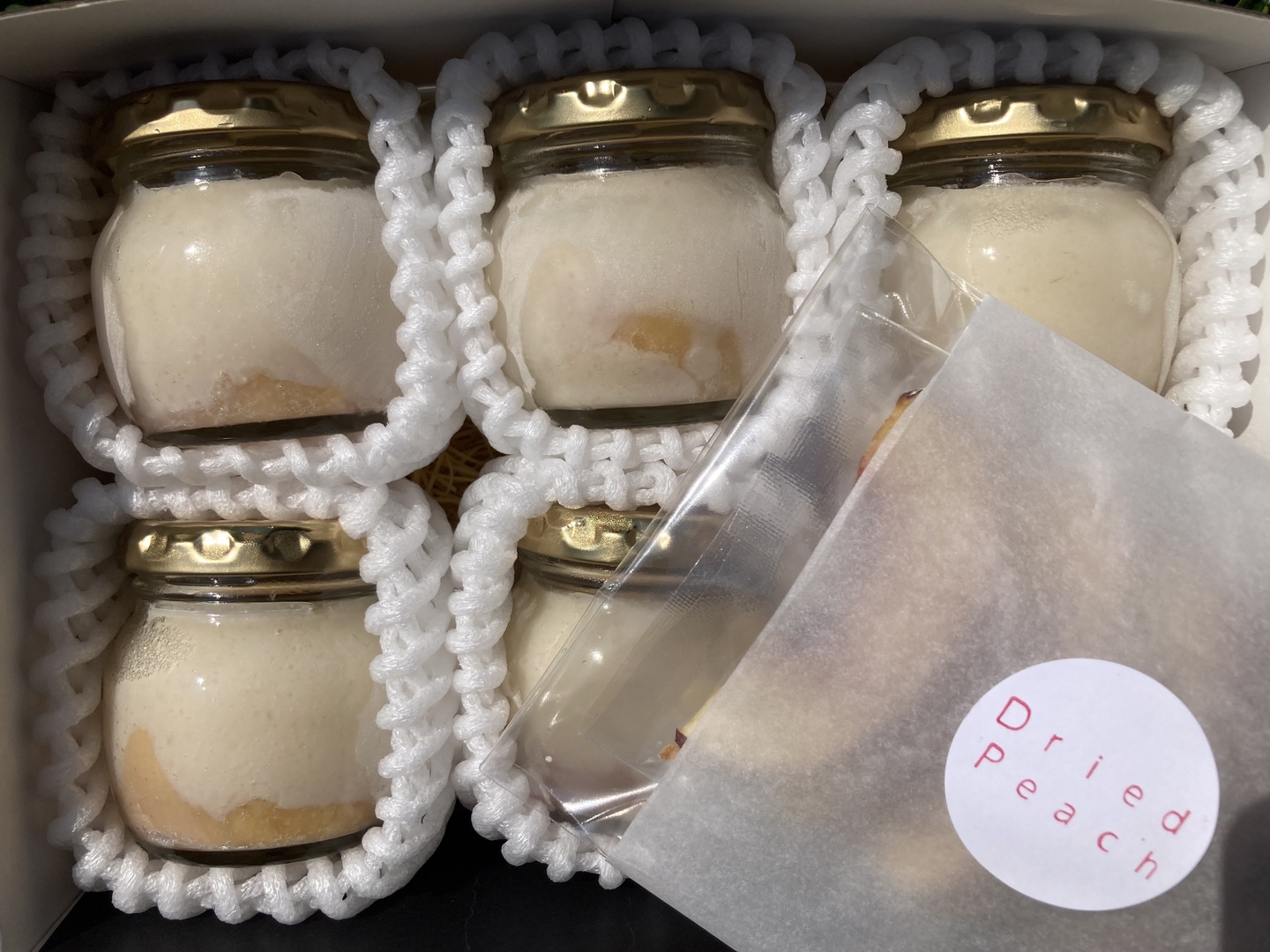 ももミルクぷりん6瓶・桃ドライフルーツ1袋