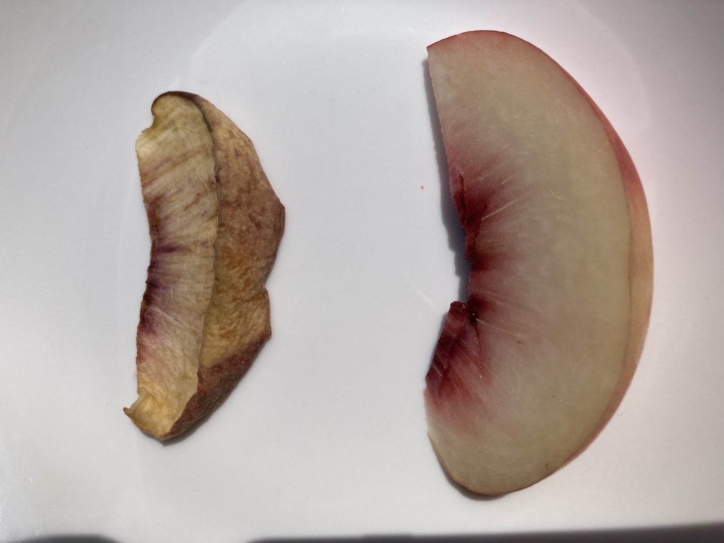 厚切りにすると、乾燥までに時間がかかりますが、歯ごたえと桃の風味はピカイチです。
