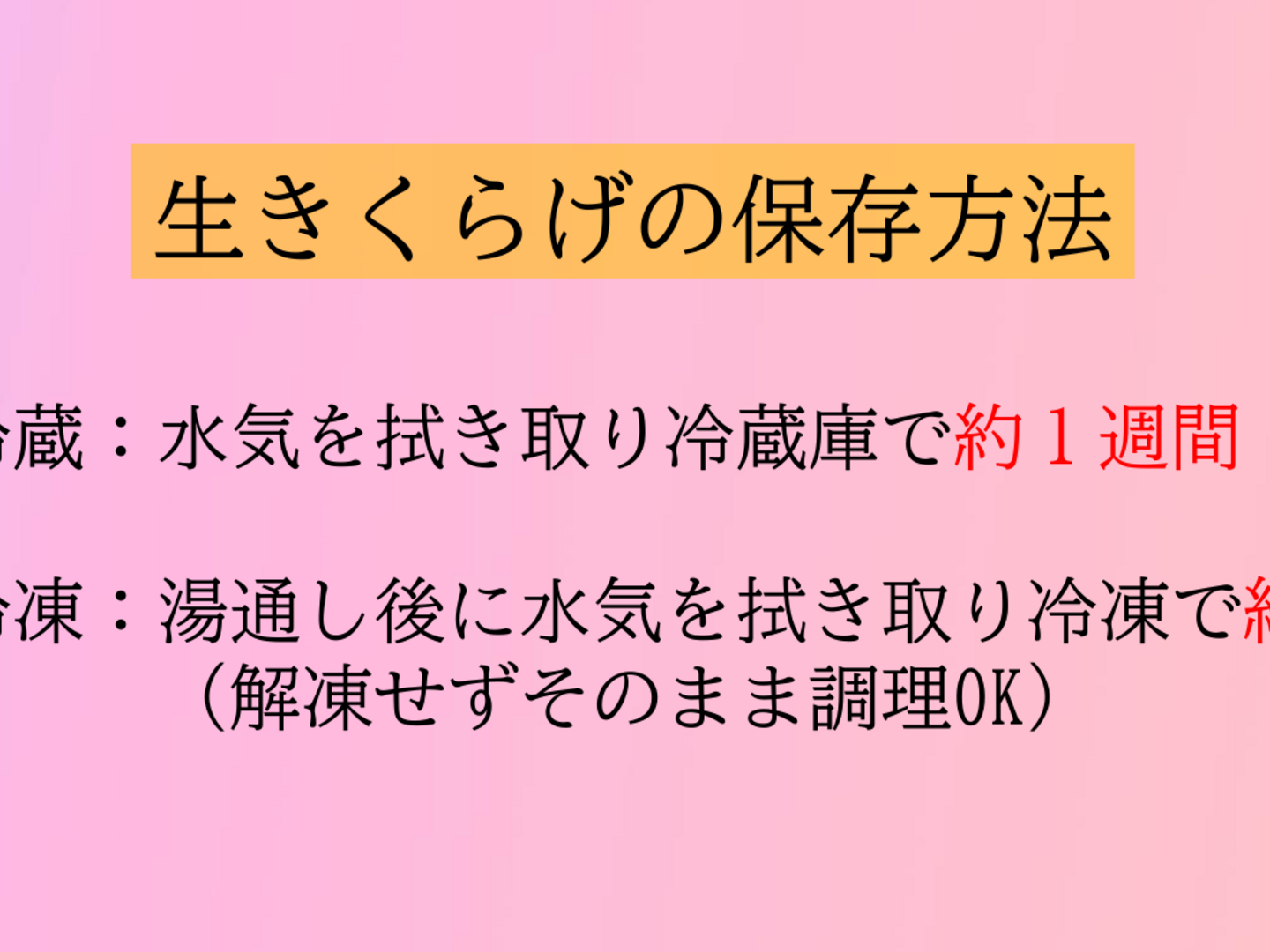 水気を拭き取り冷蔵で約1週間、冷凍で約1ヵ月