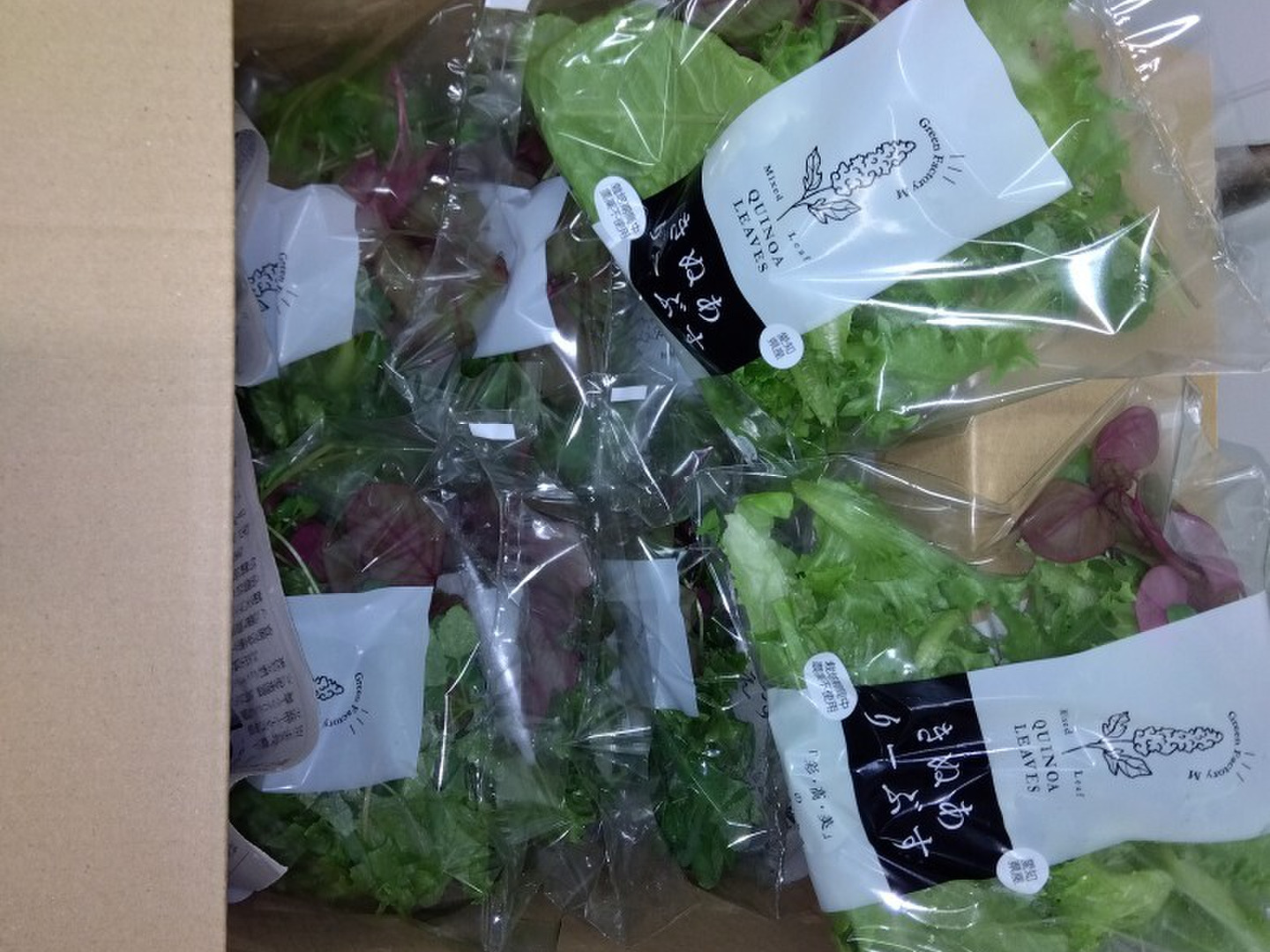 通常の土耕栽培では葉が虫に食われ、食用とする事はありませんが、M式水耕研究所独自の栽培技術によりベビーリーフとして提供が可能になりました。