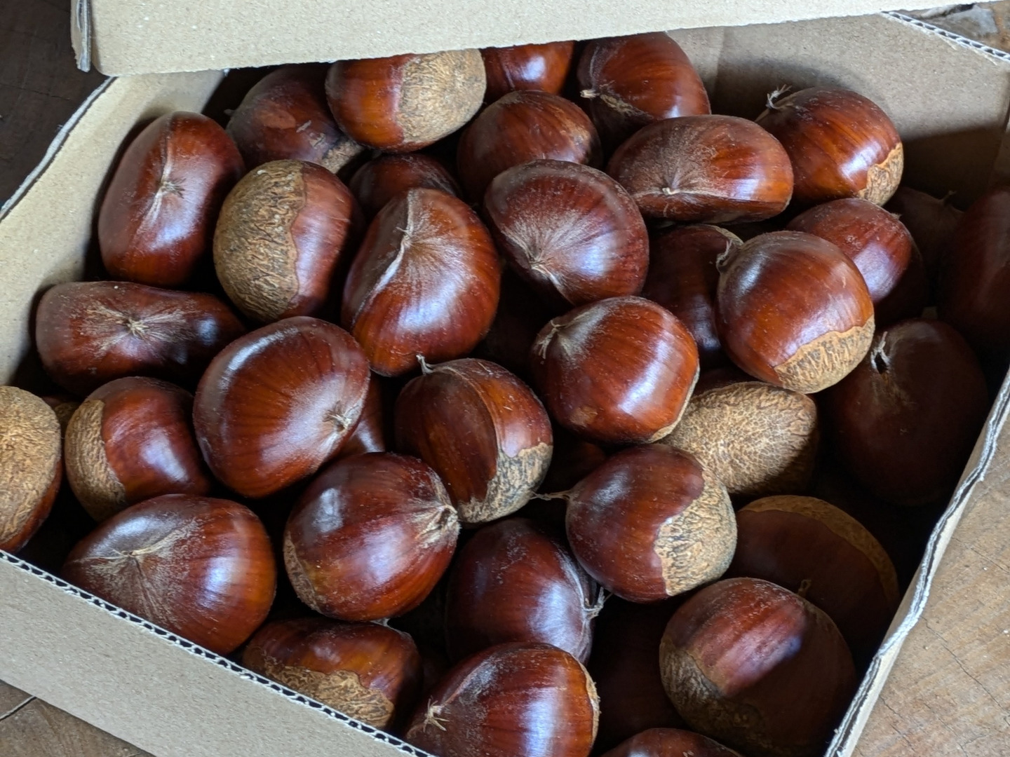 樹齢80年以上の利平栗の木から秋の恵みです。農薬や殺虫剤は一切使わず自然のまま育てています。北海道仁木町は朝夕の寒暖の差が大きく栗のコクと甘さが非常に高いです。