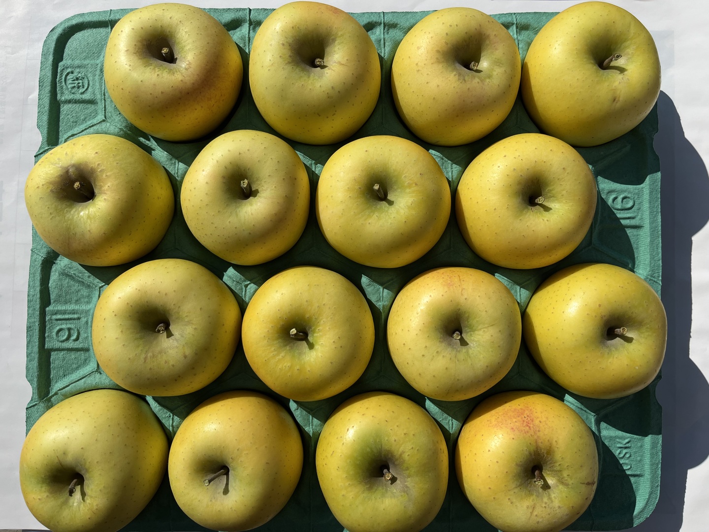 サクサクしていて、とてもジューシーで、甘味の中にしっかりとした酸味を感じることができる、さわやかな風味の黄色いりんごです。樹上で完熟したりんごをお届けします。