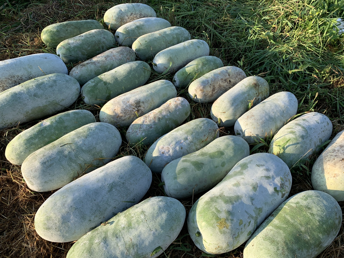 化学肥料だけでなく、堆肥等有機質肥料も薬剤も使わずに自然のちからで育った冬瓜です^^; 品種名は「大冬瓜」です。