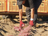 寒い地方はサツマイモが向かない、とよく言われます。けれども、当園の八竜農場は、雪国のわりには温暖な気候で、砂丘地帯にあるため土質や養分状態がサツマイモ栽培にピッタリ。当園の主力野菜の一つになっています。
