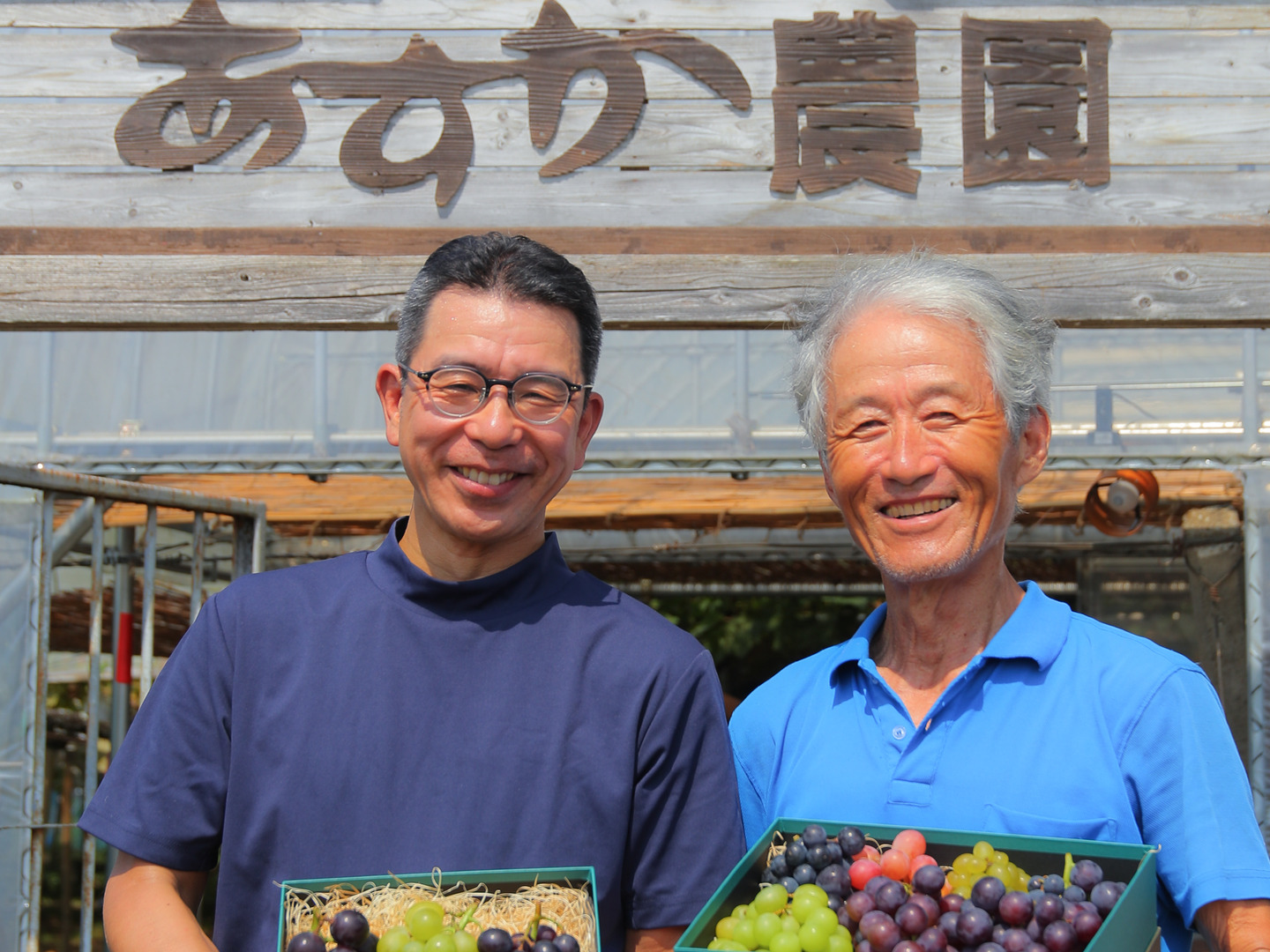 栽培期間中農薬や化学肥料を使わず育てた、あすか農園のこだわりぶどうの詰め合わせです