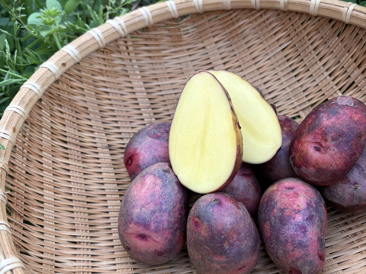 - 赤紫の皮と黄色い果肉の個性的な見た目