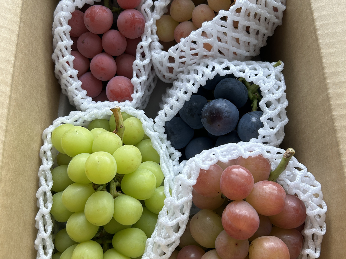 | 内容 | 山梨県勝沼産 シャインマスカット・クイーンニーナ・スカーレット・甲斐キング・サンシャインレッド 3000g以上(5〜6房) | ||||||