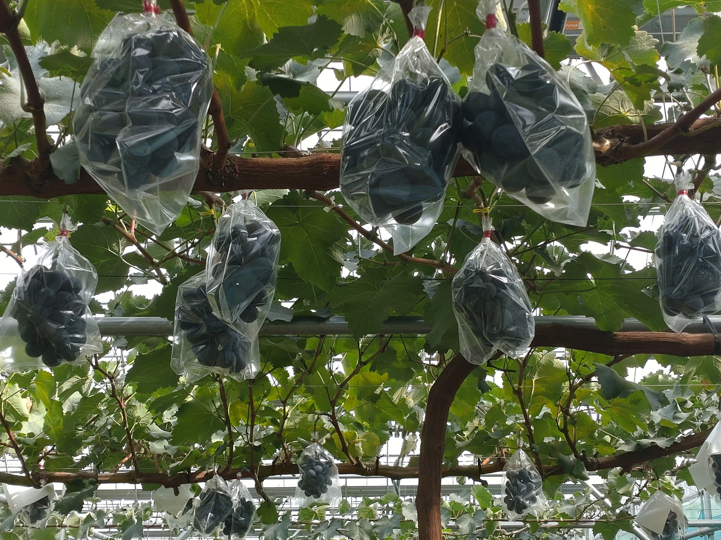 ④果皮表面の白いワックスの様なものは、葡萄が自身を守る為に分泌するブルーム(果粉)と言うもので、害の無い天然物です。