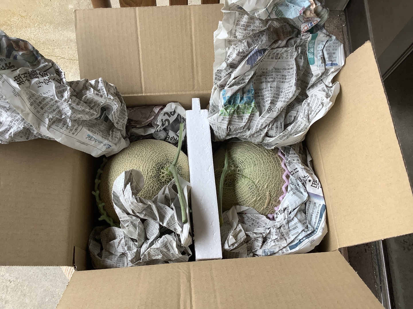 訳あり理由は、非常に暑い日が続いたこともあり、潅水量の管理に苦労をし、ネットの不良のものが多く出来てしまったことで、それらの割安販売になります。見た目はよくありませんが、ご家庭で気楽にお召し上がり頂くには丁度良いかと思います。ひと玉の大きさは1.5㎏程度、2玉合計で3㎏以上になるように発送します。