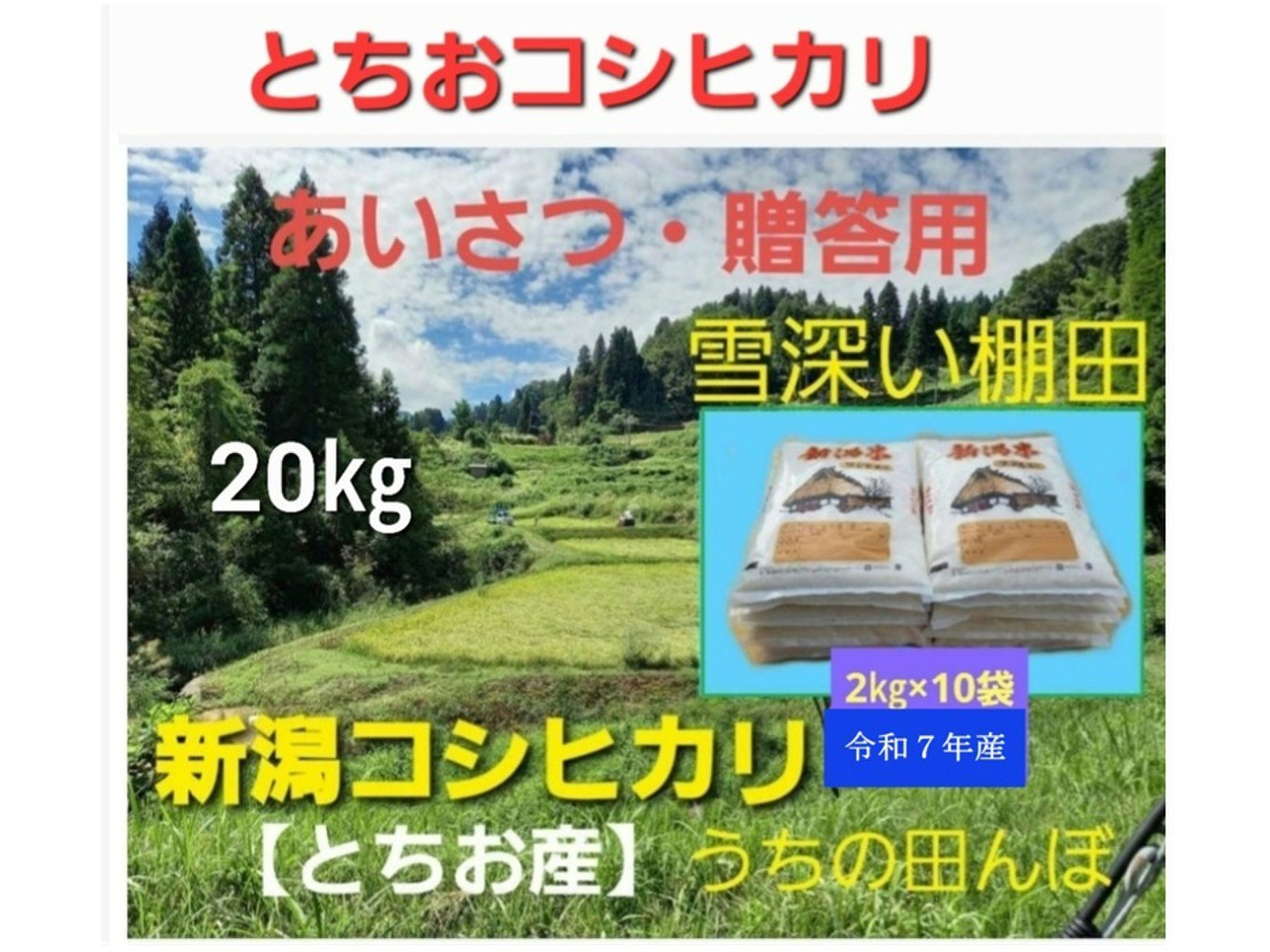 新潟コシヒカリ #令和7年産新米 #とちお産コシヒカリ #棚田米 #希少米 #農家直送 #20kg #精米 #贈答用 #中越産米 #長岡市とちお #有機肥料 #冷蔵保存米