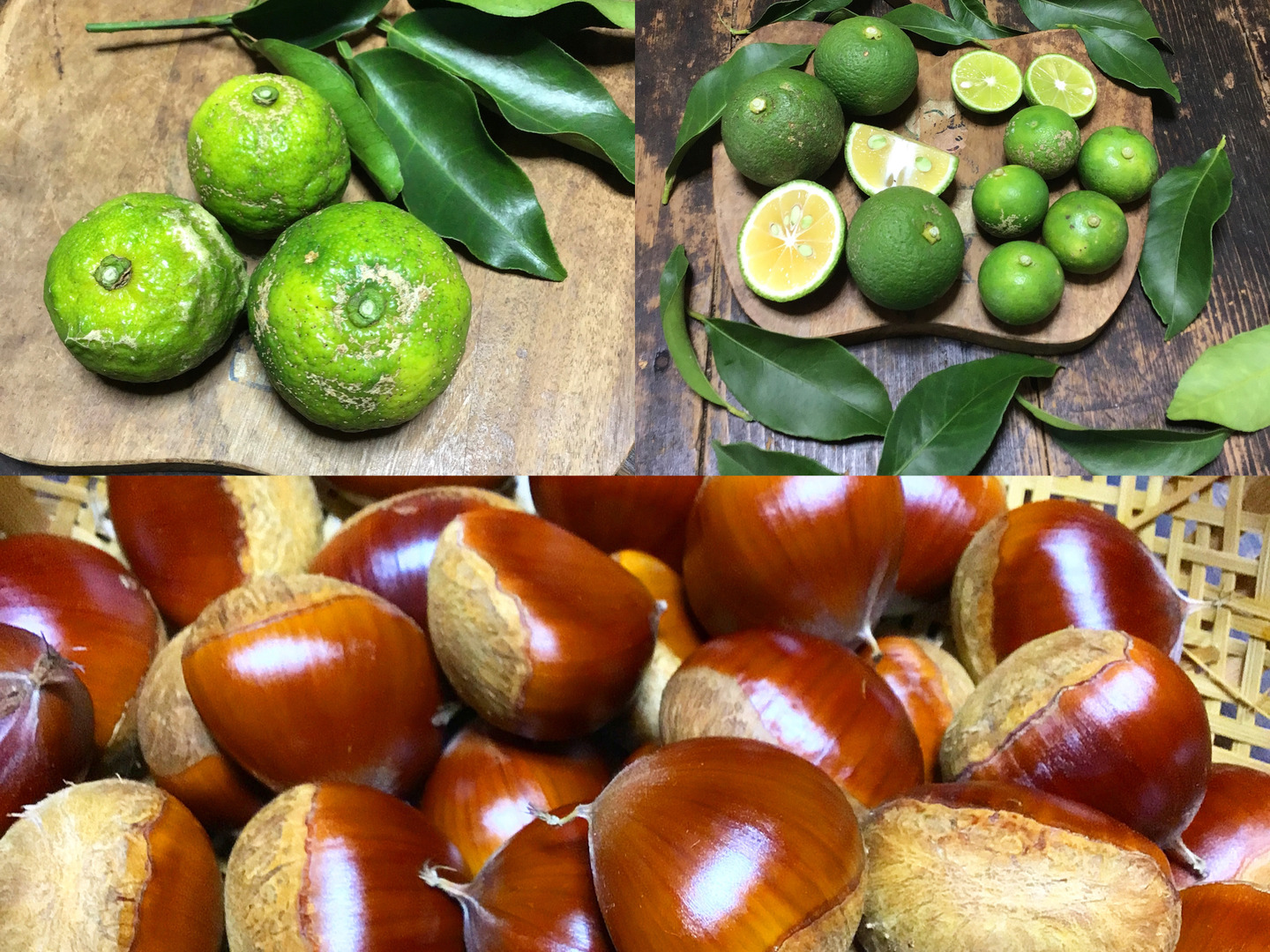 農薬不使用で育てた栗と酸っぱい柑橘たちをセットにしました。