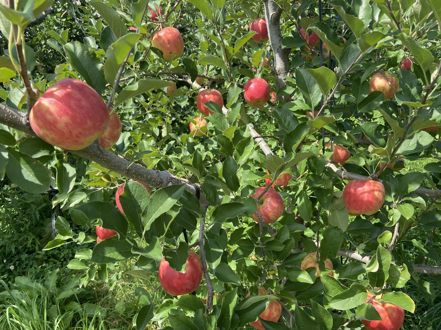 りんご3兄弟(秋映、シナノスイート、シナノゴールド)の少し前に収穫できる品種です。