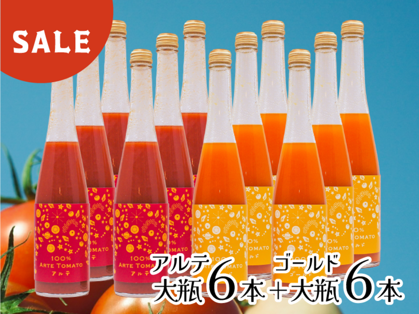 【60%OFF】100%アルテトマトジュース☆大瓶12本セット【アルテ6本+ゴールド6本】【賞味期限:2025年12月10日】