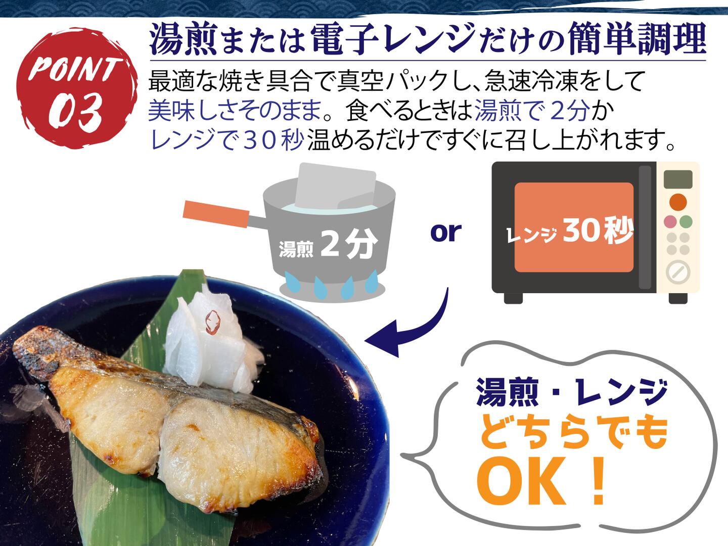 - サワラの西京焼きは湯煎か電子レンジだけの簡単調理