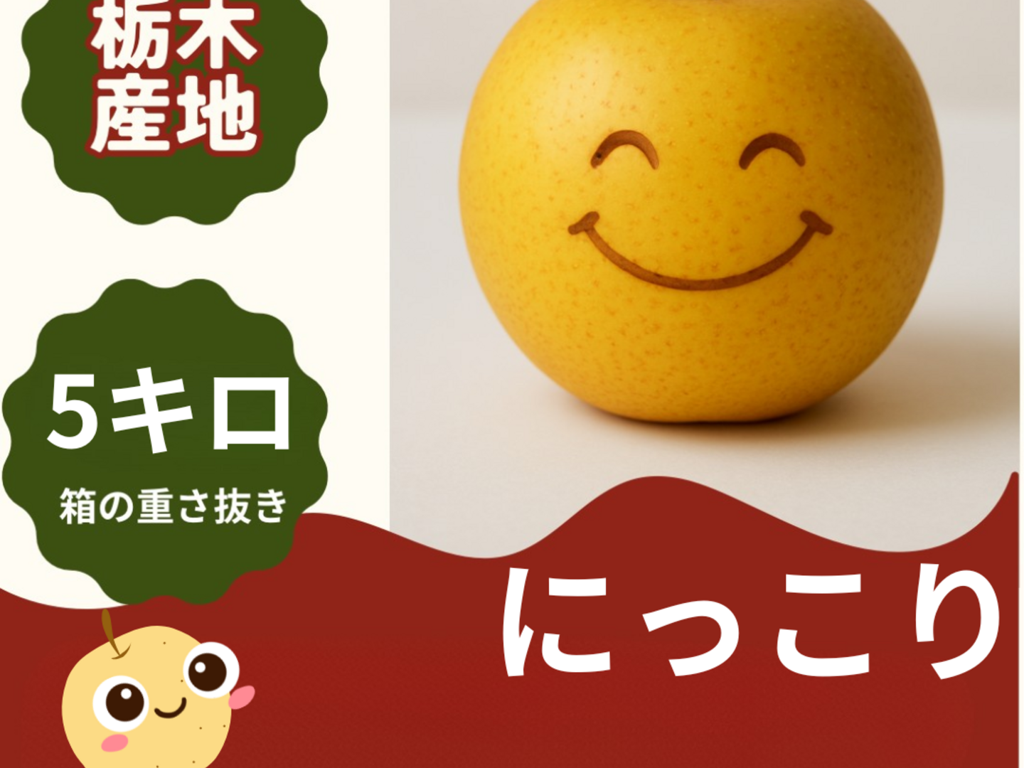 栃木県産のにっこり梨、5キロ(10-11個入り)です。
