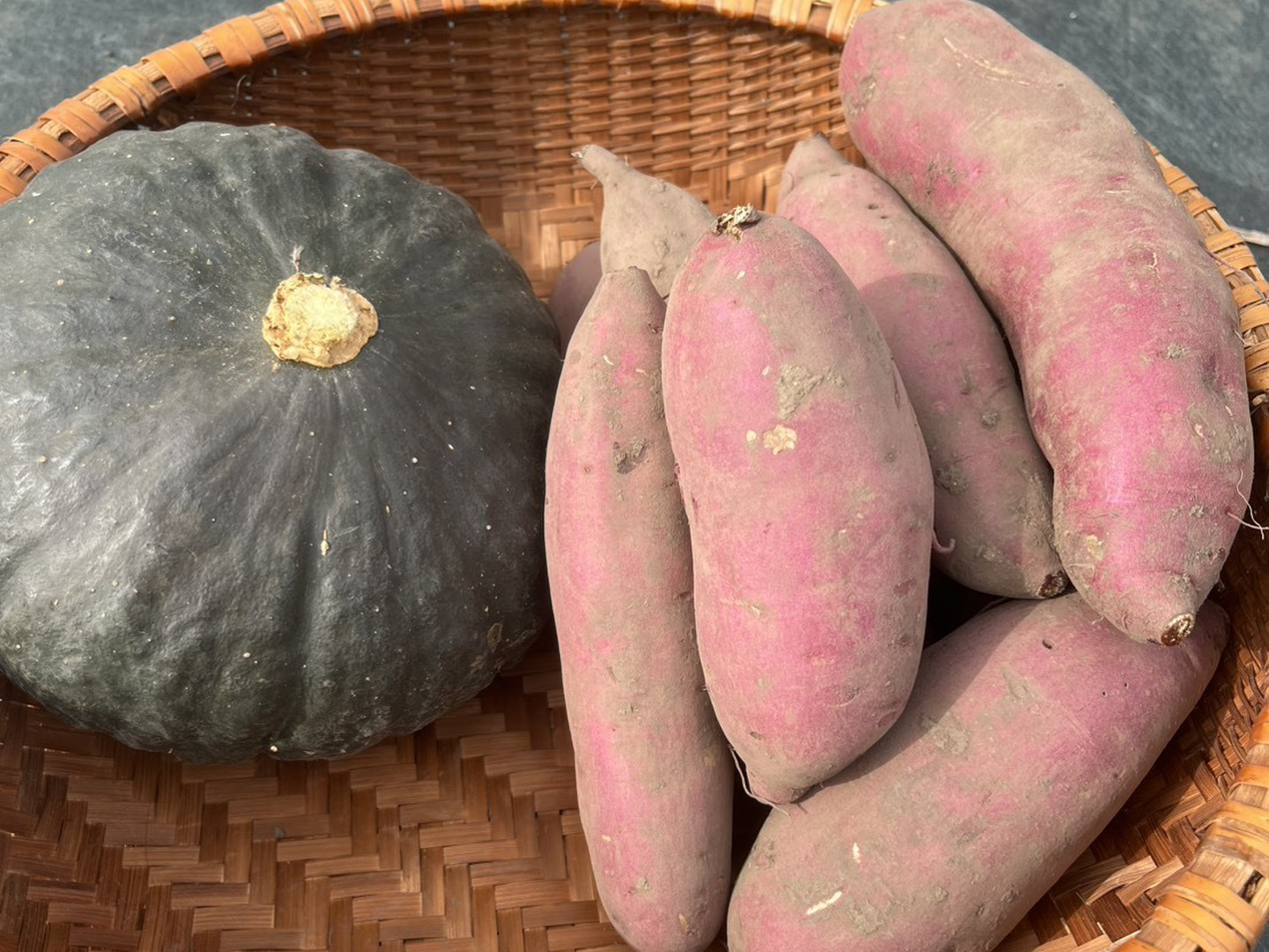 栗カボチャ2kg程度と新しいさつまいも「あまはづき」を合わせて5kgにしてお送りします。