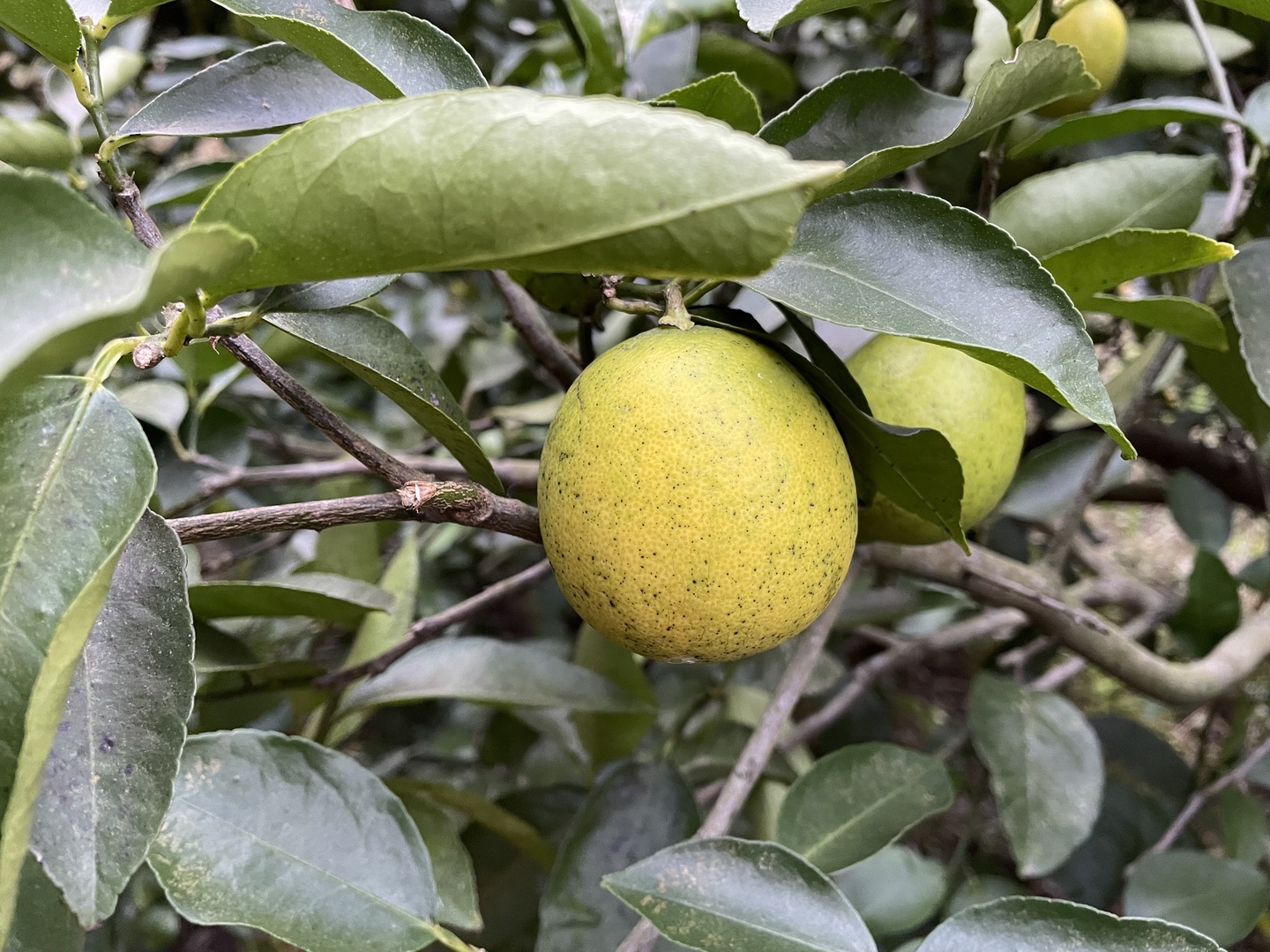 レモンのように時期により皮の色が変化していきます。(緑色→黄色)