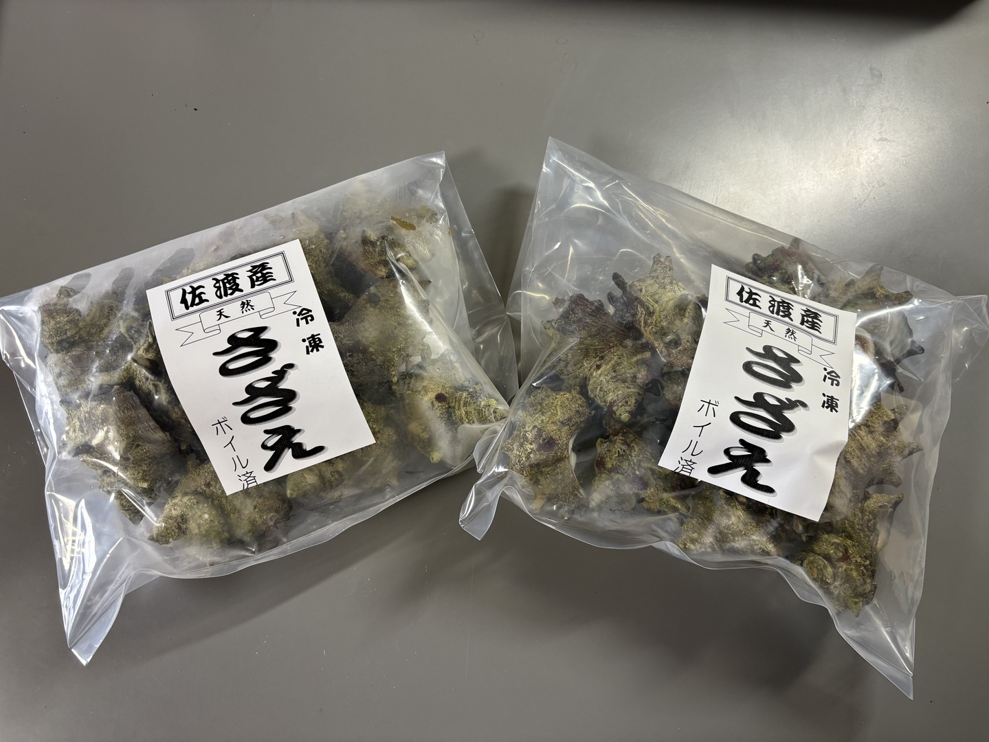 日本海の荒波で育った天然さざえをボイルして冷凍販売「佐渡産天然冷凍サザエ」(約12~18個入り)
