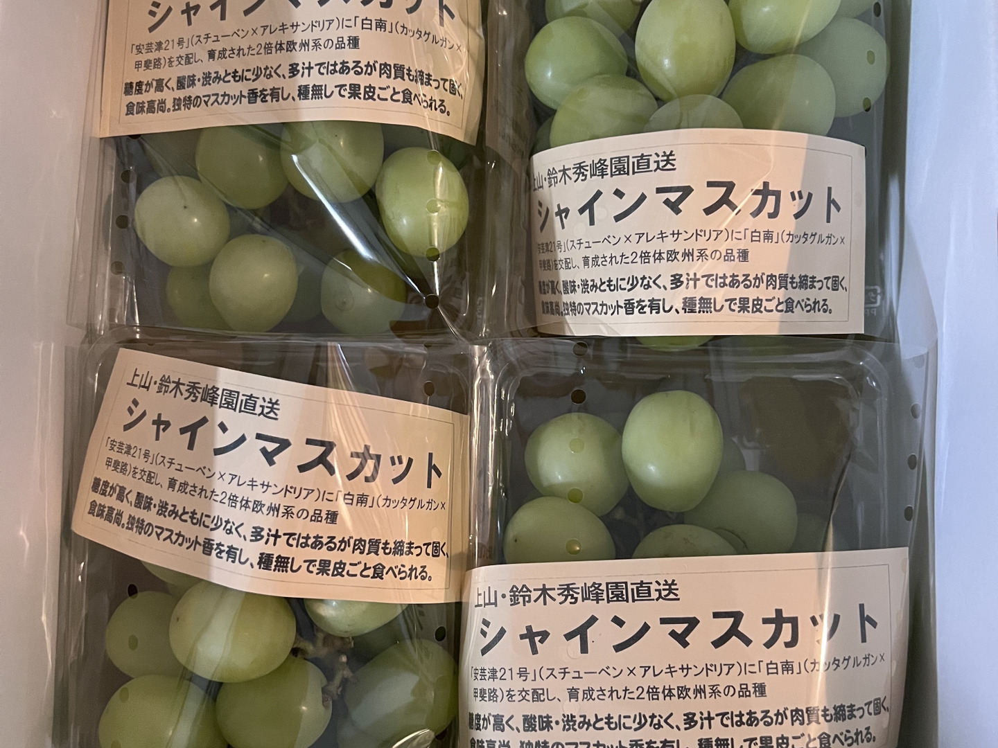 商品について あわせ買い対象 同生産者の別の「あわせ買い対象」商品と一緒にご注文いただくと、送料をまとめてお届けできる場合があります。 内容 家庭用 シャインマスカット 400gパック×4 重量・容量 約1.6kg 発送 ヤマト運輸 送料 ¥ 常温便 + ¥ 0 数量1点ごとに送料が発生します。 種別 果物 ぶどう シャインマスカット 産地 山形県 慣行栽培 果物 家庭用 シャインマスカット 山形県x果物 山形県xぶどう 山形県xシャインマスカット 商品説明 <味>糖度が高く皮ごと食べられます<栽培のこだわり>樹上完熟を収穫<産地の特徴>傾斜地栽培で環境の良い所です<品種など>シャインマスカット もっと見る この商品のことをお友達にもシェアしませんか ポスト シェア