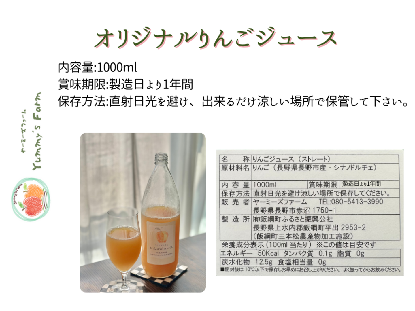 無添加!信州りんご発祥の地 長沼産 シナノドルチェ 100% 生産農家直送 りんごジュース 6本 長野県 化学肥料不使用 除草剤不使用 人にやさしく環境にもやさしい農産物