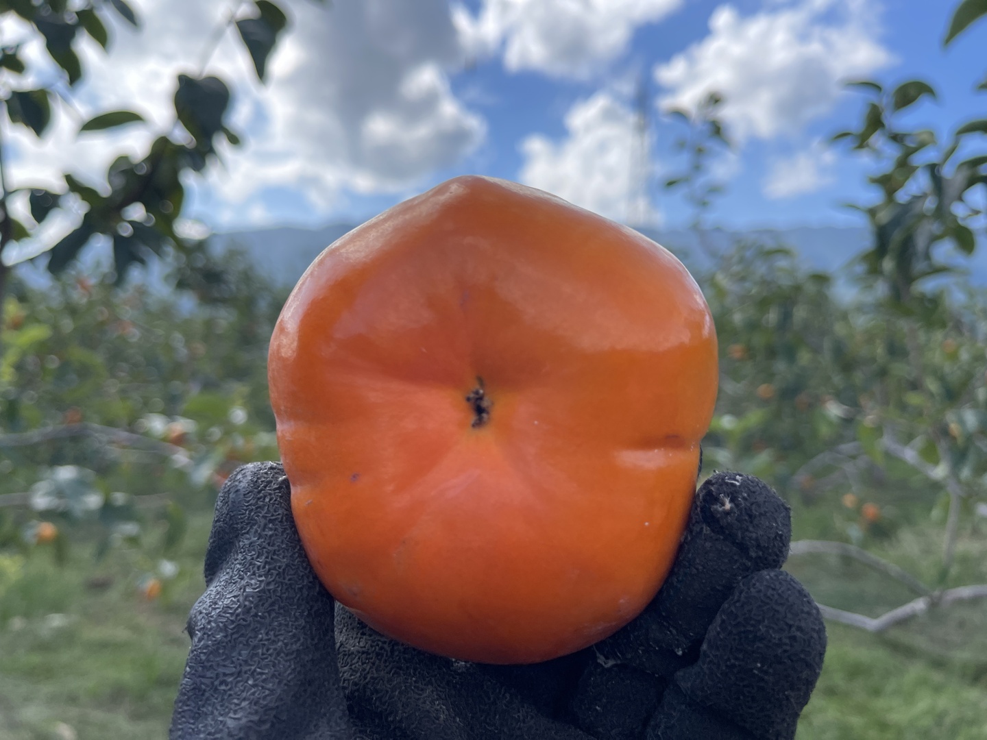 ふかふかの土壌で育った鮮やかな朱い柿です。