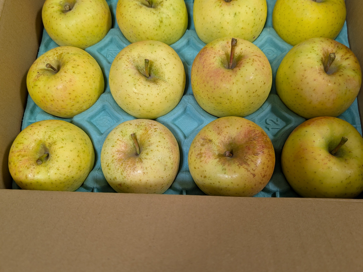 この商品は、食べきりサイズの小玉りんごです。当園で販売している家庭用に比べて、サビ、日焼け、傷が目立ちますが
