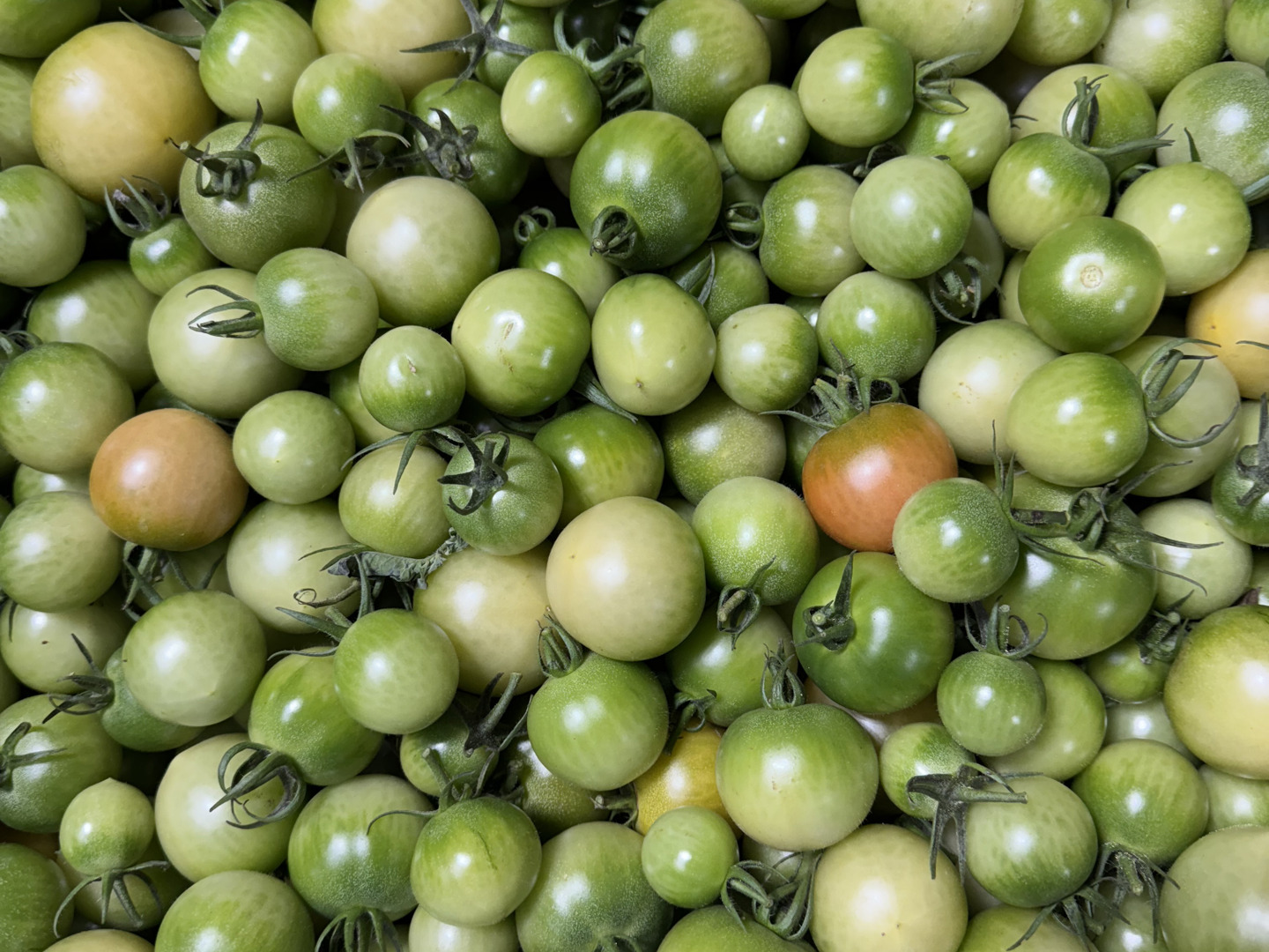青ミニトマトは赤く熟す前のミニトマトで、スーパーなどに並ぶことないのでこの機会にどうぞ。