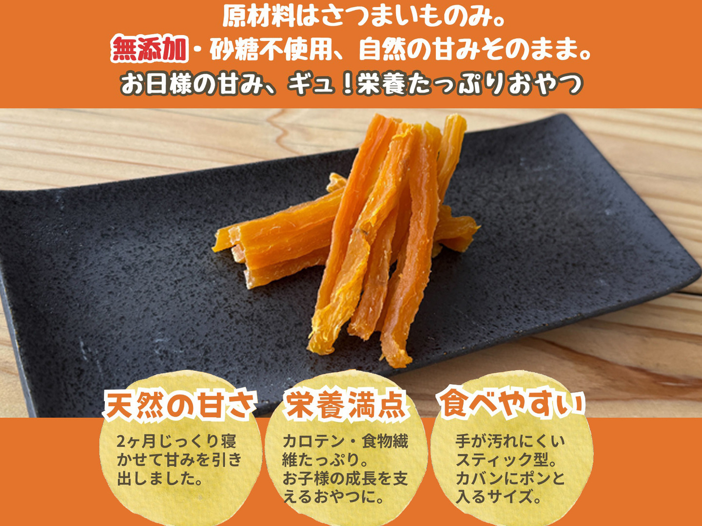 小さなお手軽サイズ(9cm×15cm)の『★いも』をポケットやカバンに入れて、登山やトレーニングの携行食に、子どものおやつに、仕事中の小腹満たしに、自然な甘さを、ぜひご賞味ください。