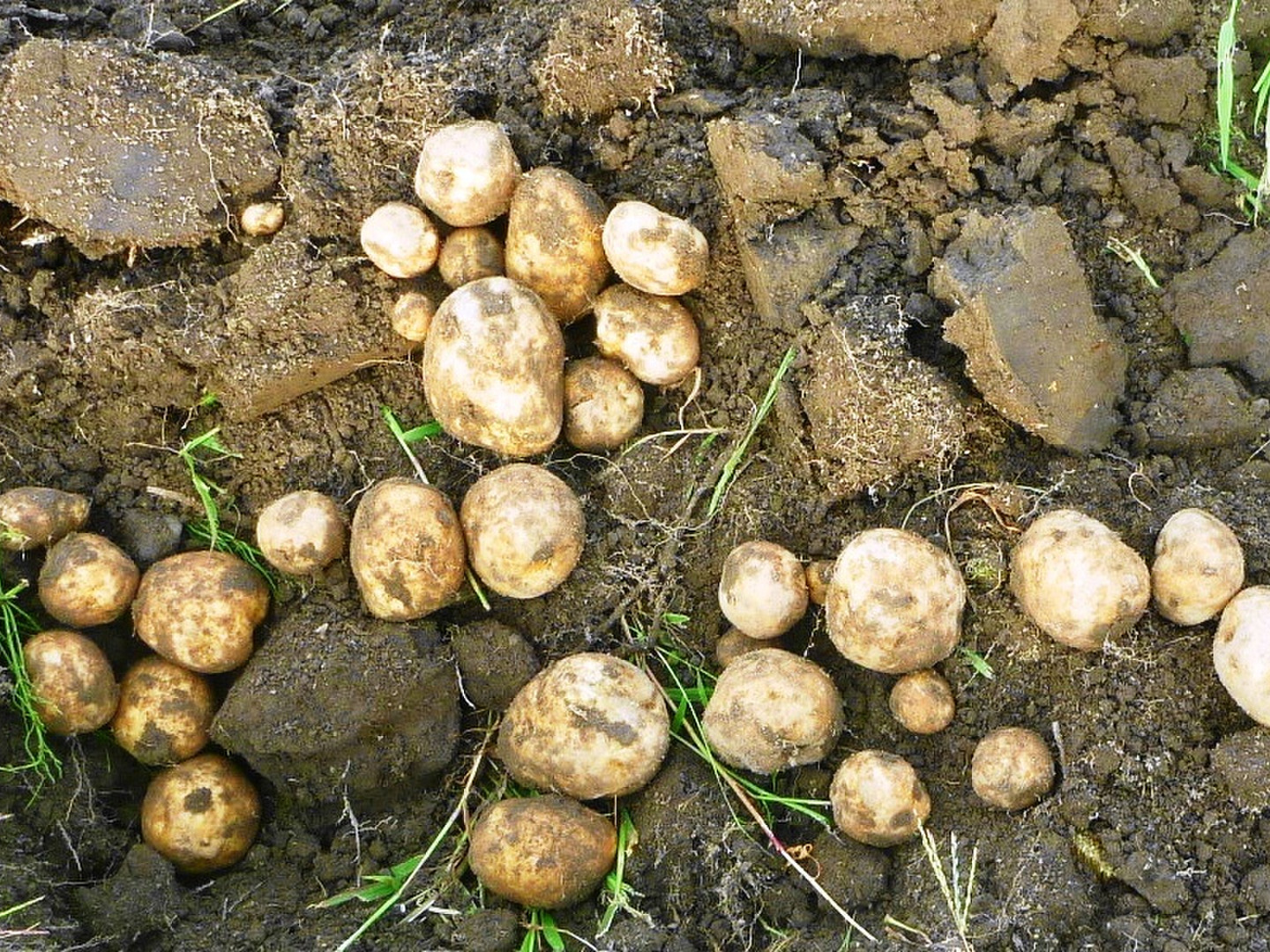 愛情を込め、根気よく、手作業で世話し、掘り出したジャガイモです。