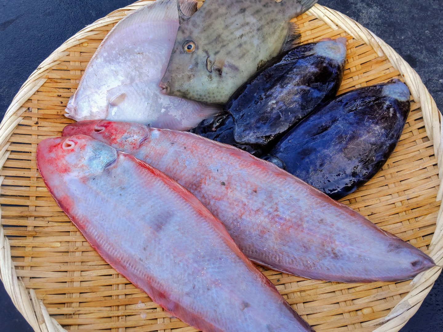 底引き網漁のためウロコ、皮がとれてる場合もあります。