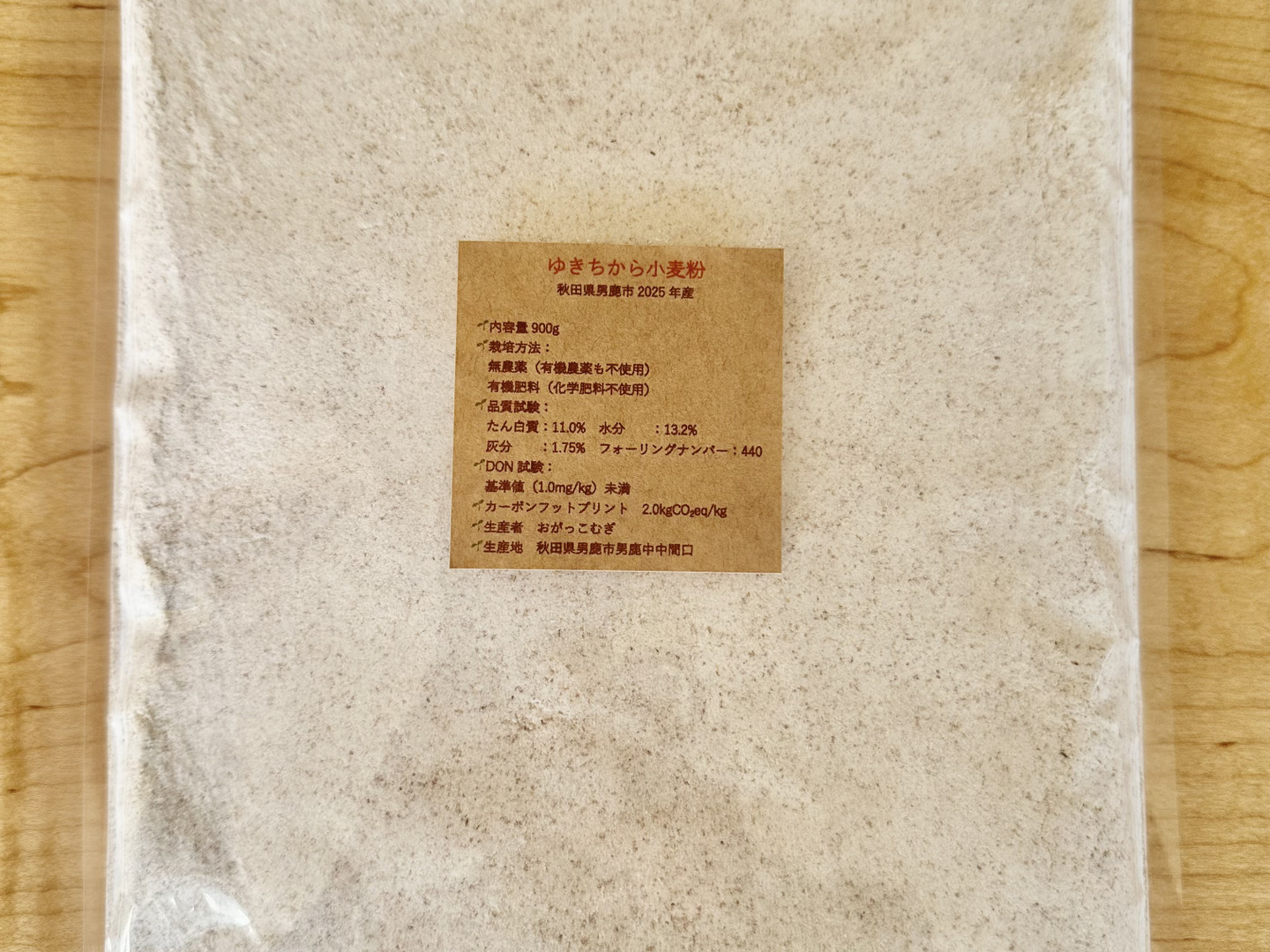 小麦全粒粉(秋田県産ゆきちから) 有機肥料のみ・栽培期間中農薬不使用 2025年産 約900g