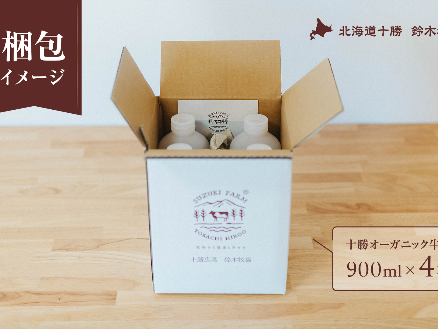 【冬ギフト】十勝オーガニック牛乳900ml×4本 有機・グラスフェッド・A2ミルク・ノンホモ・低温殺菌・放牧・北海道十勝・産地直送