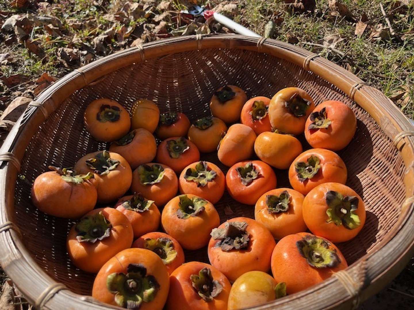 樹齢80年~100年ともいわれる柿の木で、肥料といえば、周囲の刈り取った草を根元に敷くだけ。