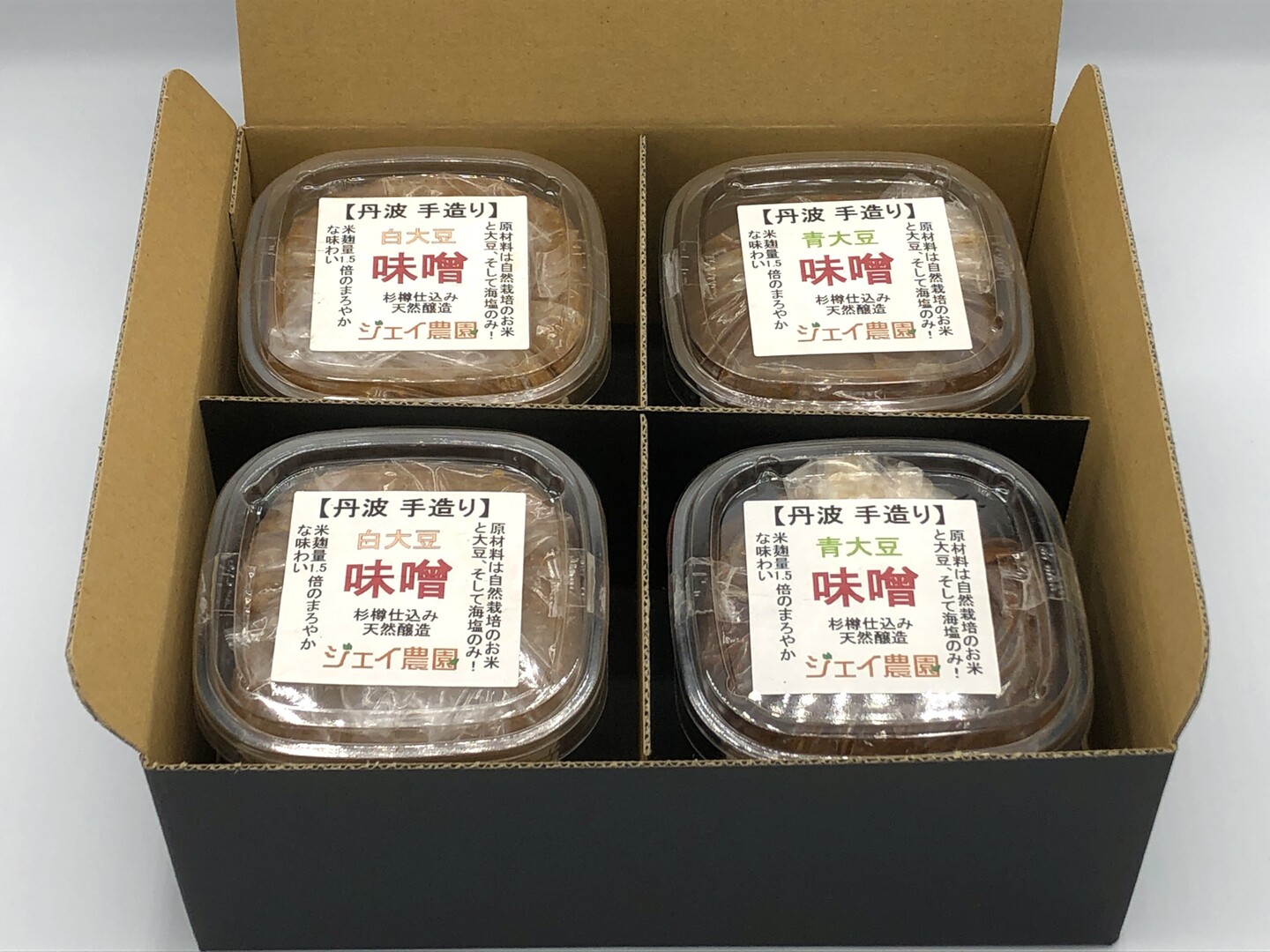 ★ご贈答品★ 甘さ感じる調理用の味噌「青大豆味噌500g」と味噌汁がおいしく仕上がる「白大豆味噌500g」の各2個入計4個入セット