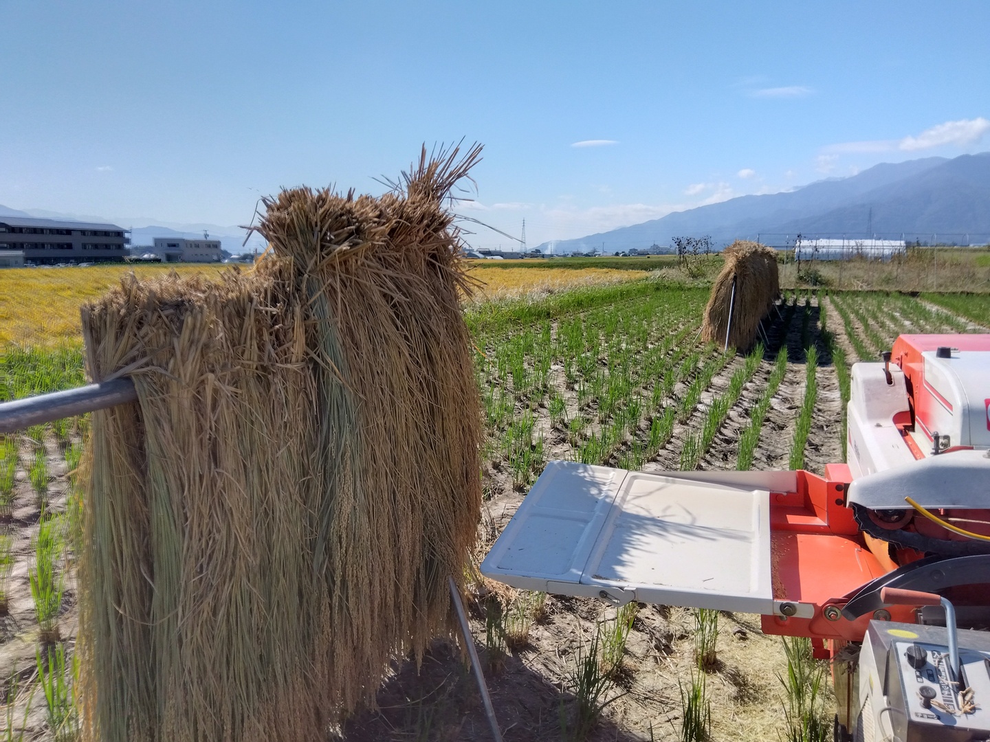 写真のようなはざに稲をかけ乾燥させる稲架掛け米です。