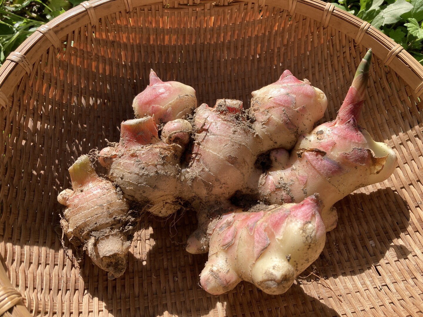 新生姜は水分が多く辛みがマイルドで、生姜そのものを味わうのに適しています。この時期だけの土佐の生姜。栽培期間中:農薬、化学肥料不使用で育った新生姜をお試しあれ。