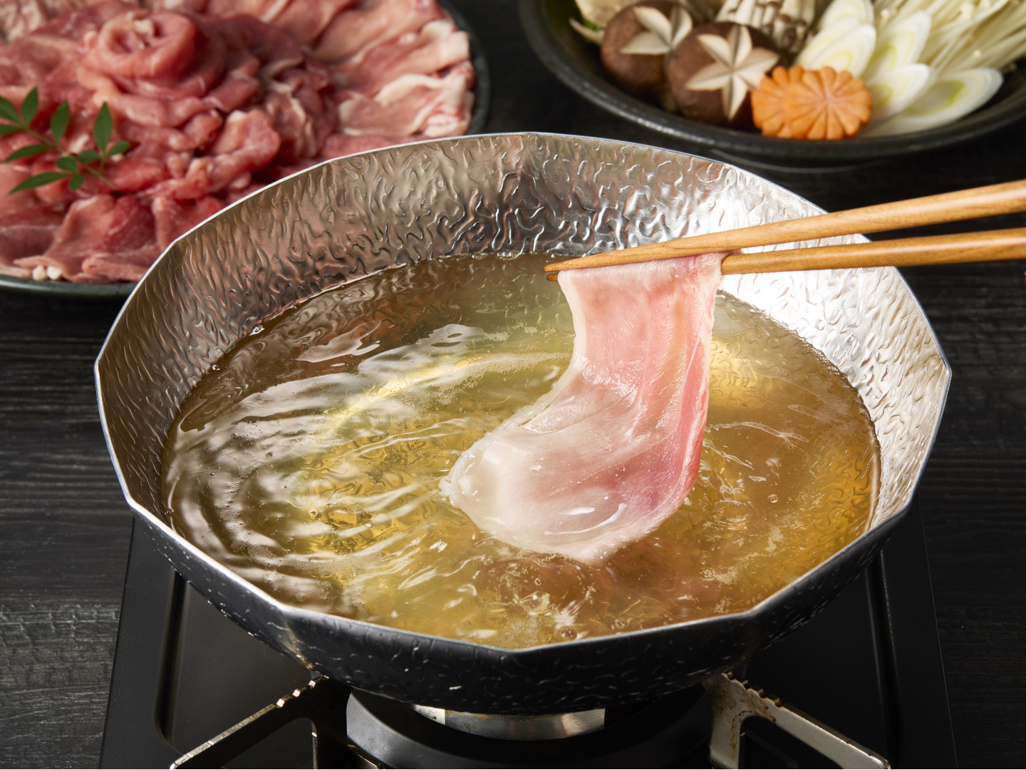沸騰しないギリギリの温度でしゃぶしゃぶしてお召し上がりください‼