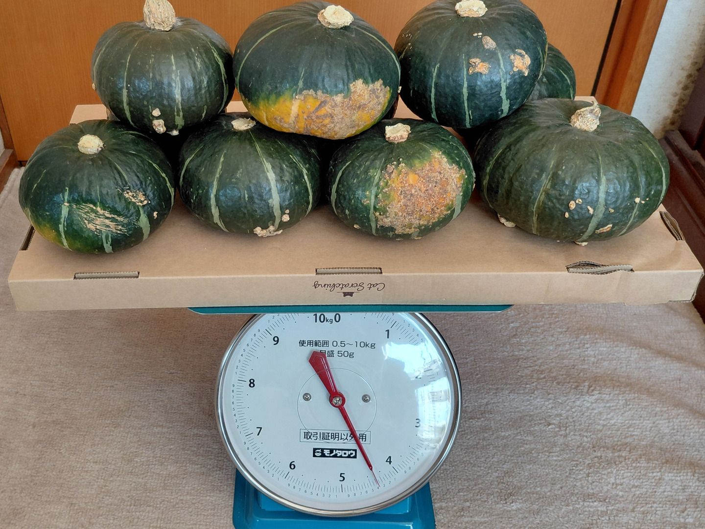 表面のかさぶた状のキズは、実が小さかった頃にできたキズをかぼちゃが修復した跡で、生理現象によるもので、食味に問題はありません。硬い部分やデコボコしている部分は、調理する際に削り取ってください。
