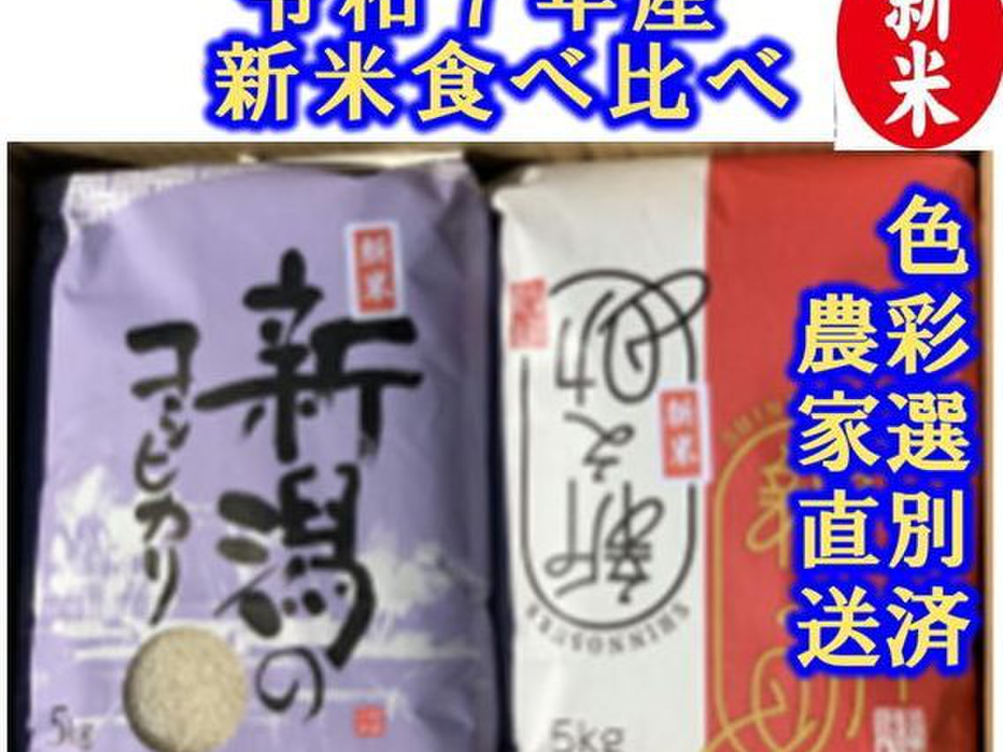 | 内容 | 令和7年産 新潟県産 従来種コシヒカリと新之助(新潟県認証銘柄) 白米5kg 各1個 | ||||||