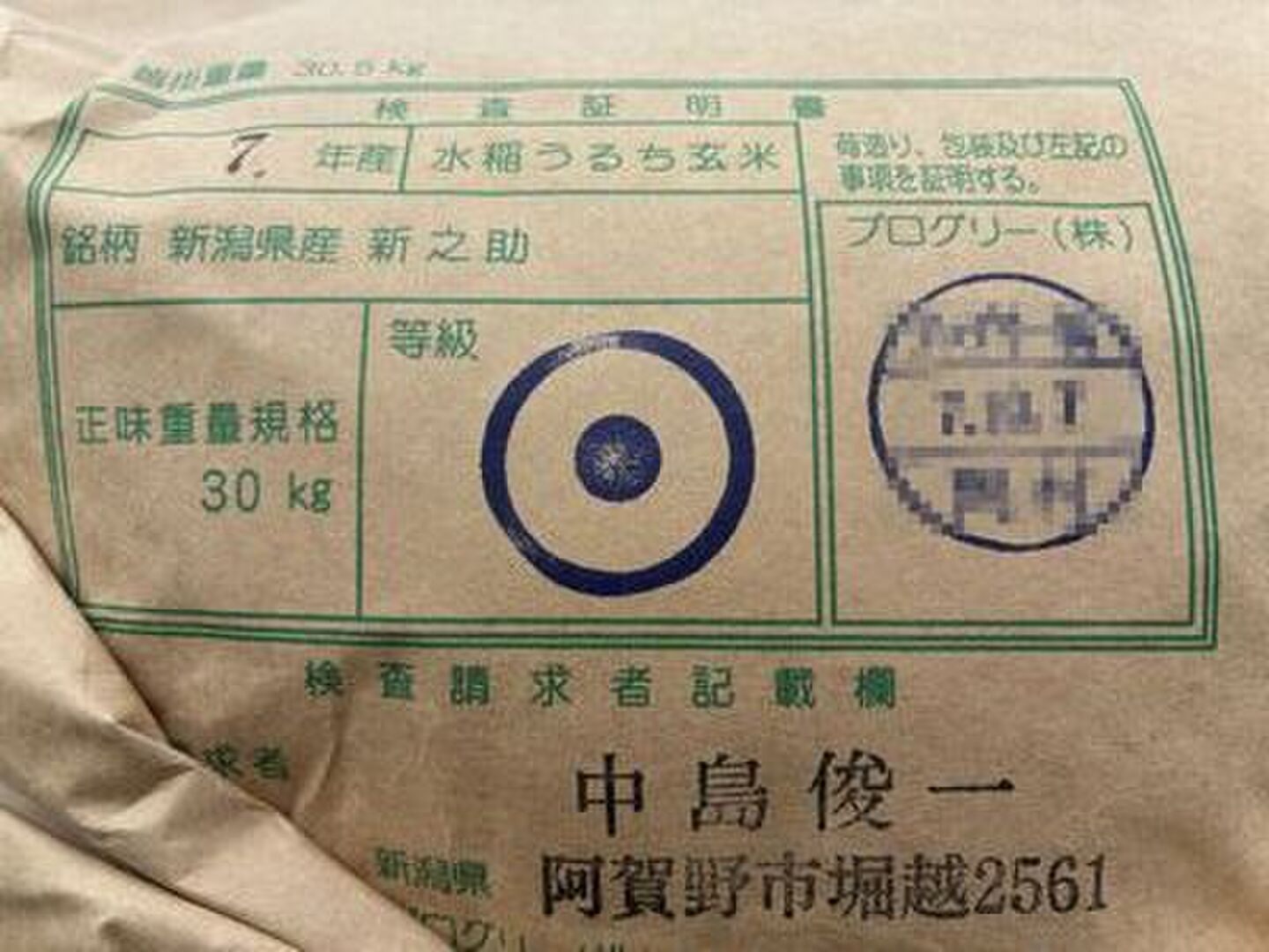 ※玄米クラフト米袋※ 大粒で 粒感がありしっかりとした食感 冷めても固くなりにくい新米 新潟県のお米のトップブランド 新之助(新潟県認証銘柄) 玄米10kg × 3個★農家直送★色彩選別済